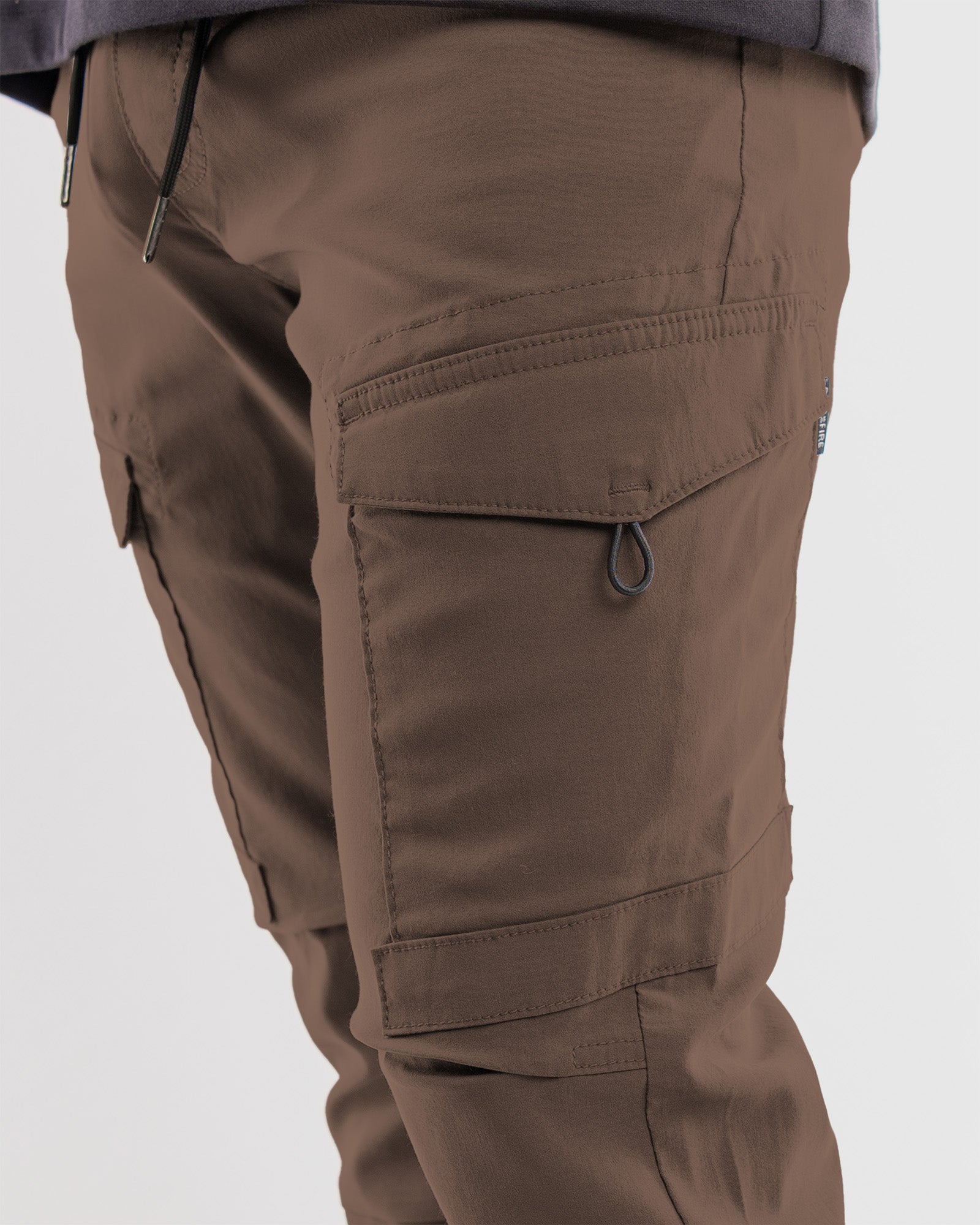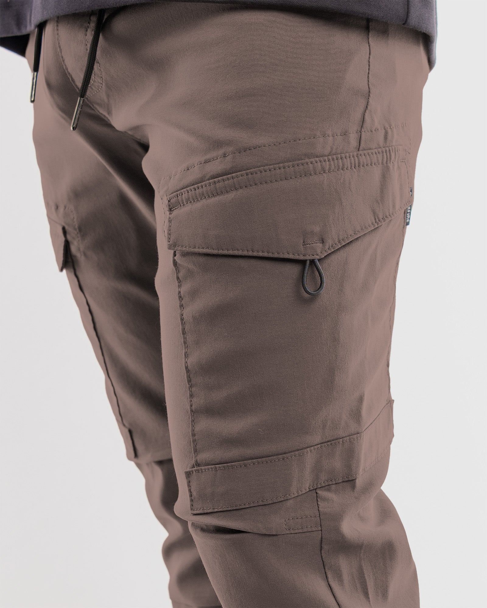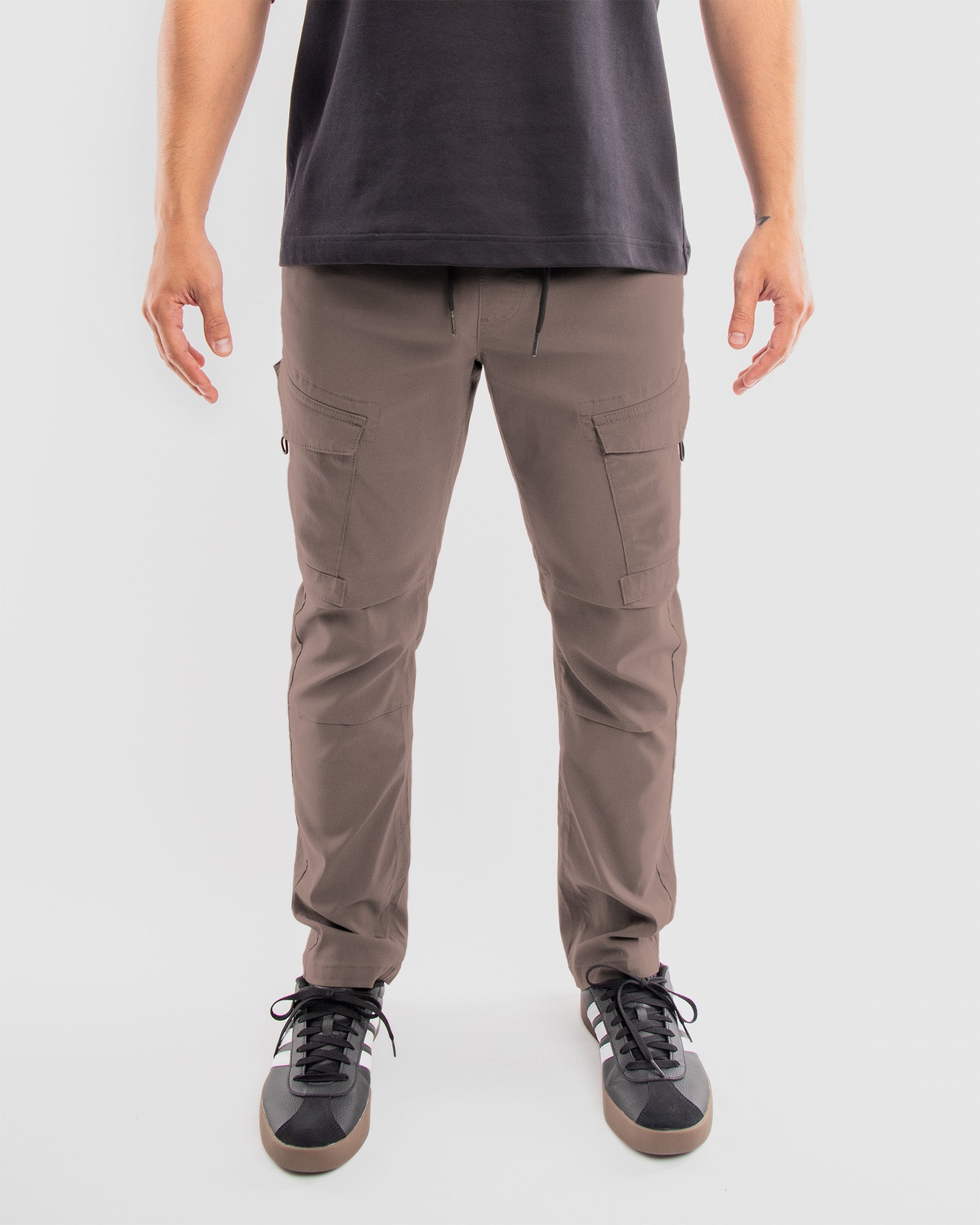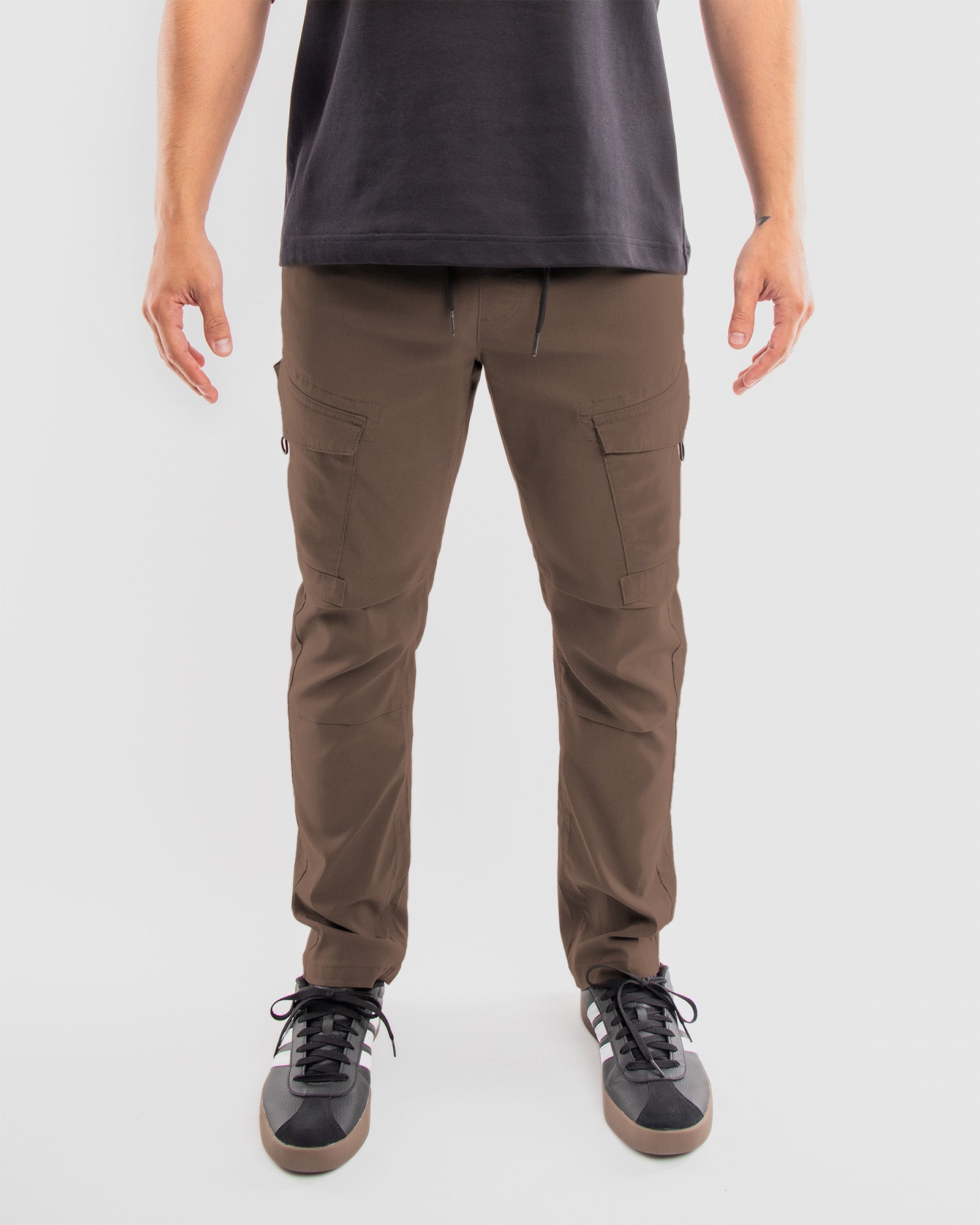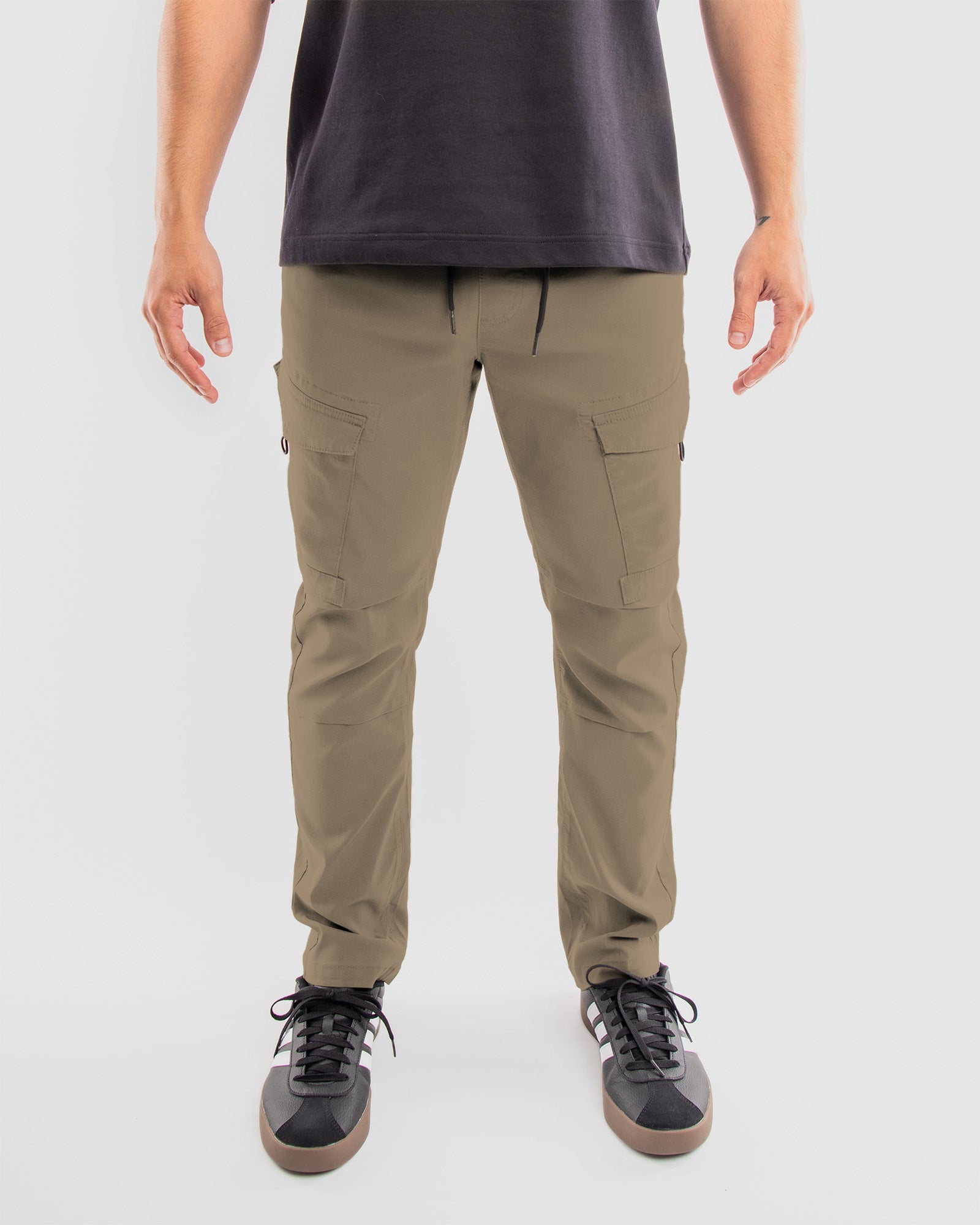 Crafted from flex stretch tech fabric, these joggers offer unparalleled comfort and durability, perfect for any urban adventure. The innovative cargo pockets, featuring unique bungee cord pulls and velcro flaps, ensure your essentials are secure and easily accessible, adding a practical edge to your look.